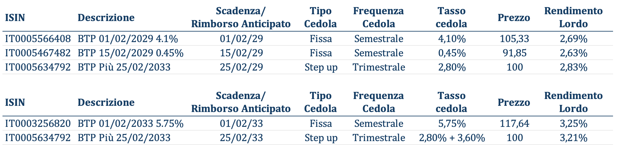 Tabelle Btp Più e Btp tradizionali di pari durata